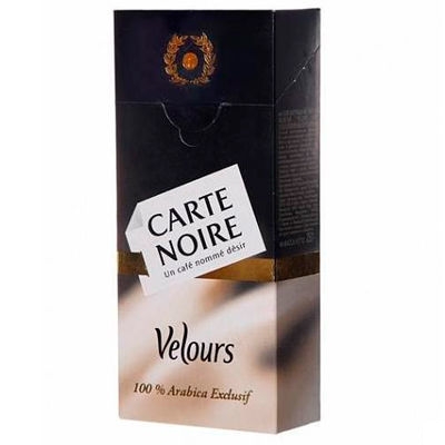 - Карт Нуар – «Велюр». Необыкновенно чувственный, изысканный и мягкий вкус этого напитка достигается благодаря особо тонкому, бархатному помолу натуральной арабики. Оцените невообразимый букет нежного вкуса, подчеркнутого глубоким пьянящим ароматом.